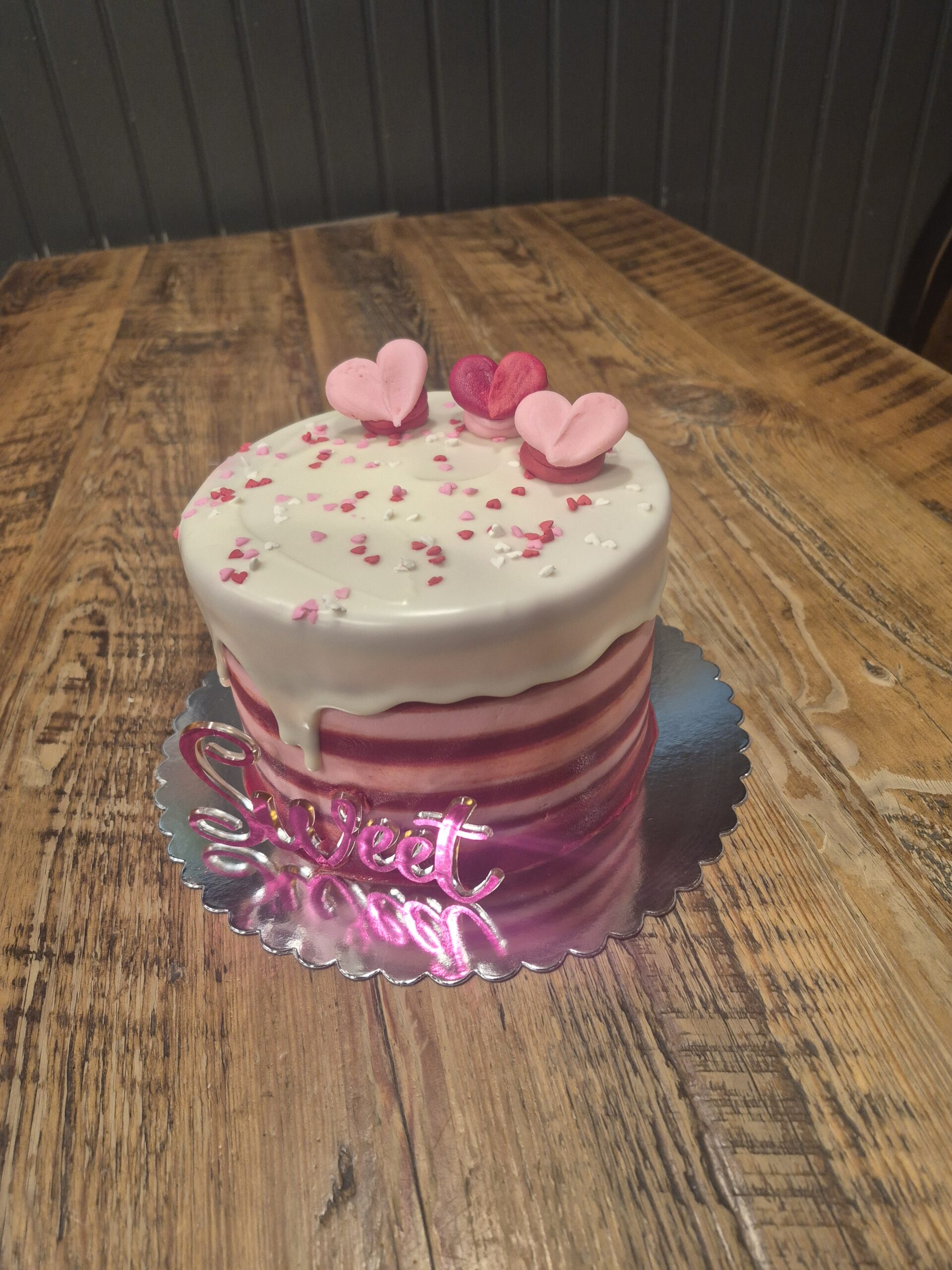 Valentine’s Day Scarlet Rose Cake 9″ serves 6-8 (chocolate cake, chocolate buttercream icing, fudge filling)